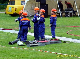 > Die Jugendfeuerwehr Walddrehna beim Kreisausscheid 2007 in Straupitz