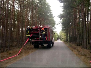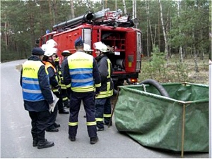Großbrand Wald mit Menschenrettung und Wasserförderung über lange Wegstrecken mit Unterstützung der Waldbrandeinheit LDS und THW