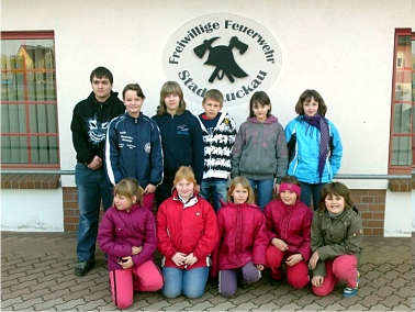 Die jüngsten Mitglieder der Gehrener Jugendfeuerwehr zu Gast in der Freiwilligen Feuerwehr Luckau. Thema der Ausbildung ist das Kennenlernen der Fahrzeuge.